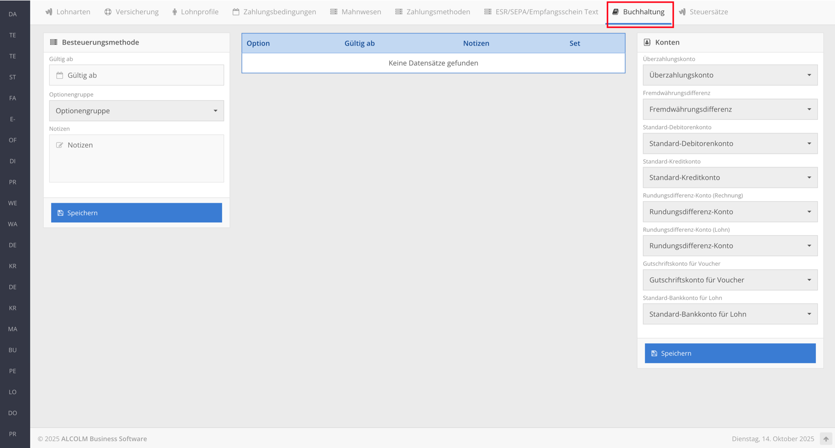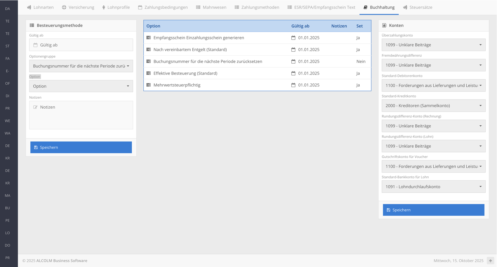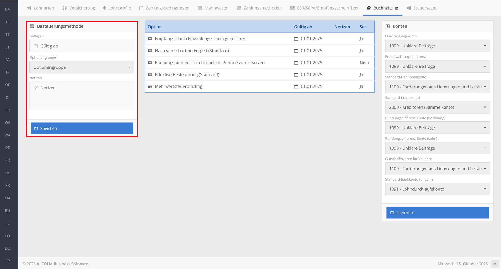 Gehen Sie anschließend in das Fenster Besteuerungsmethode.
