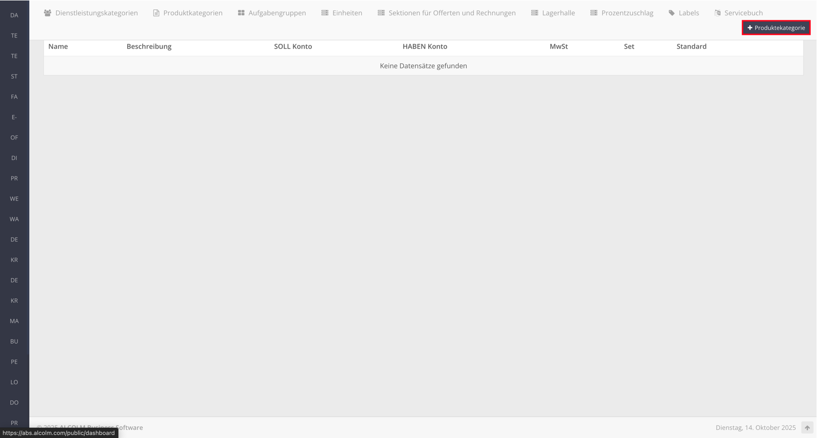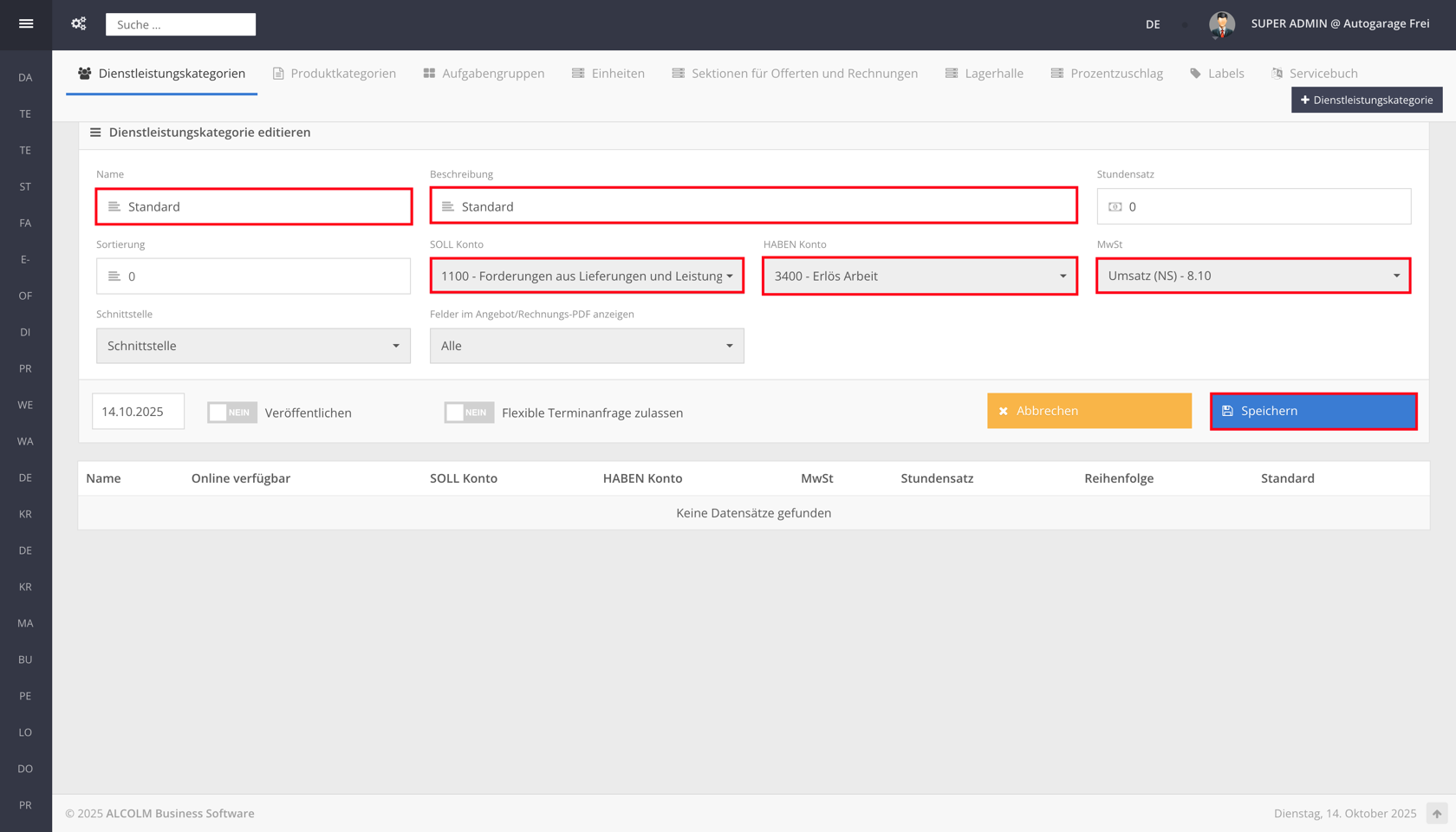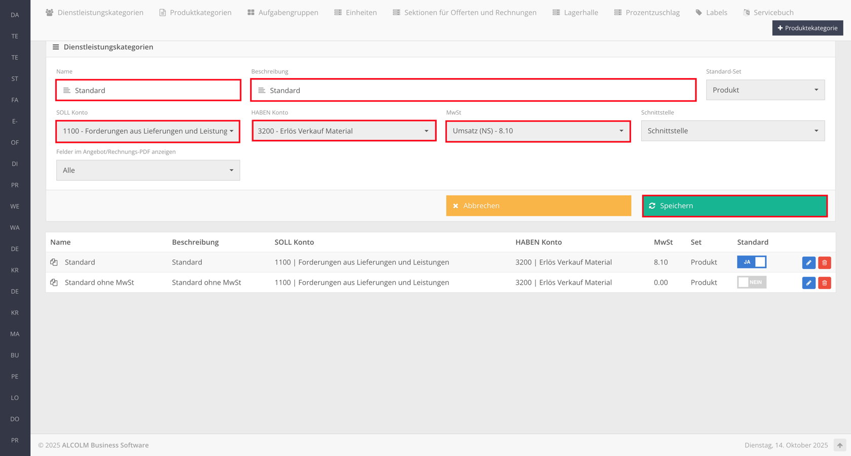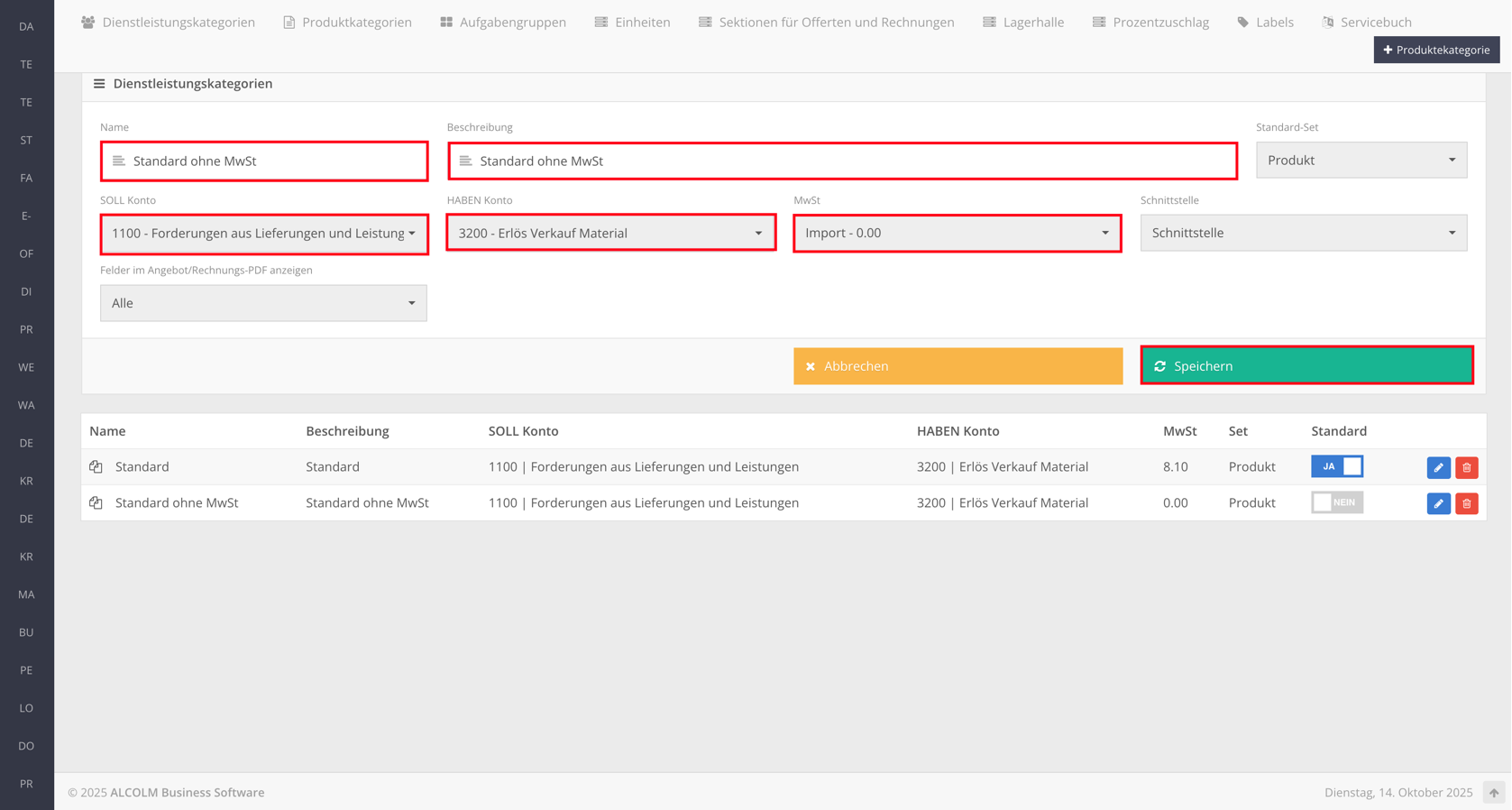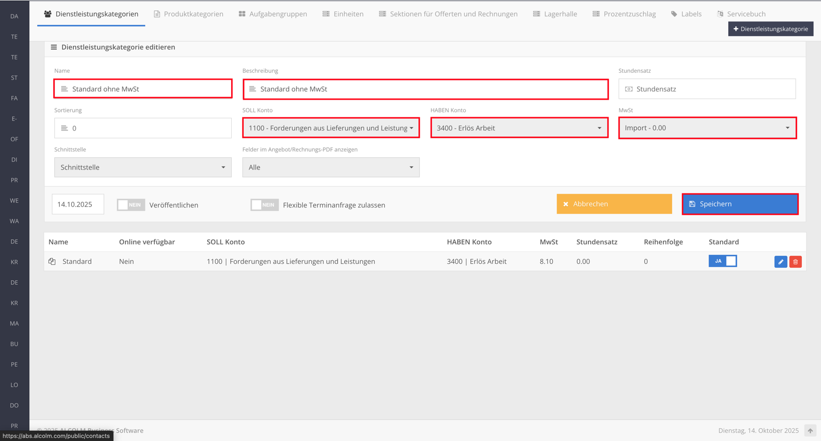 Dienstleistungskategorien erstellen