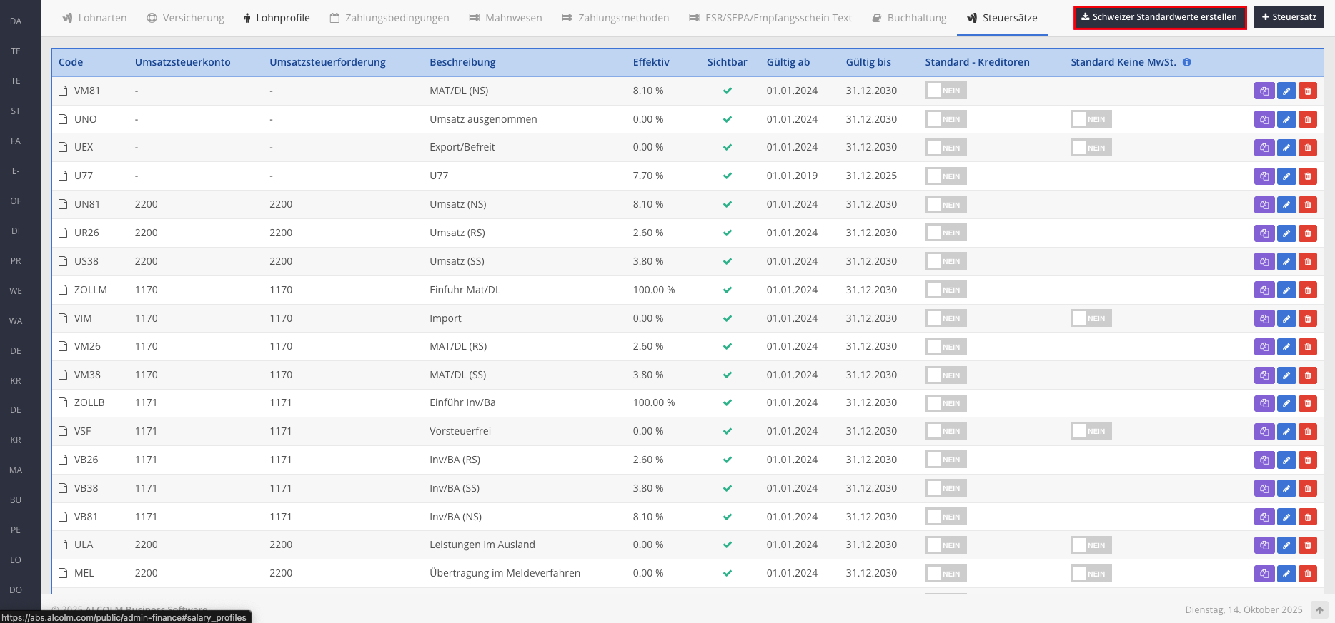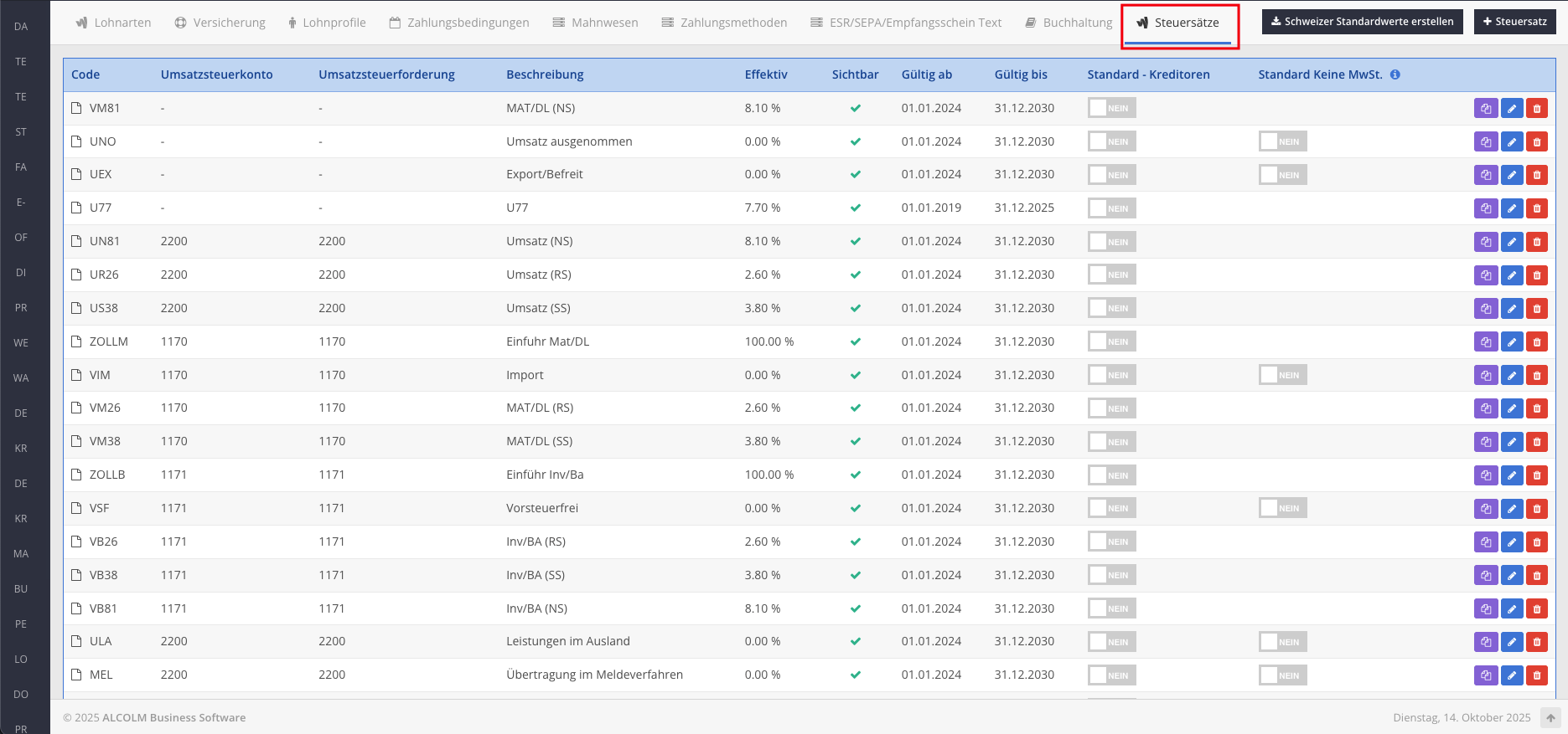 Wechseln Sie in den Tab Steuersätze.