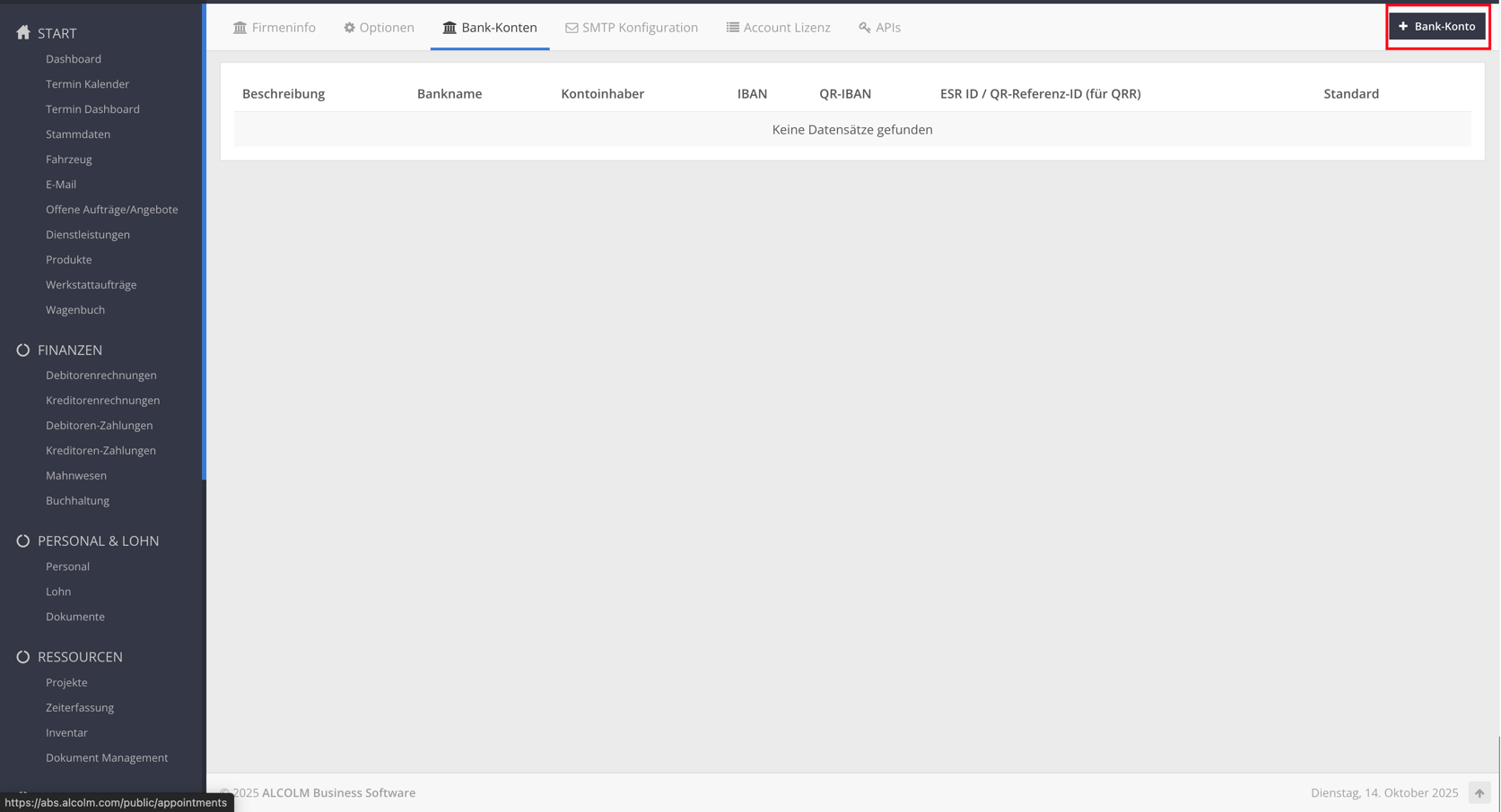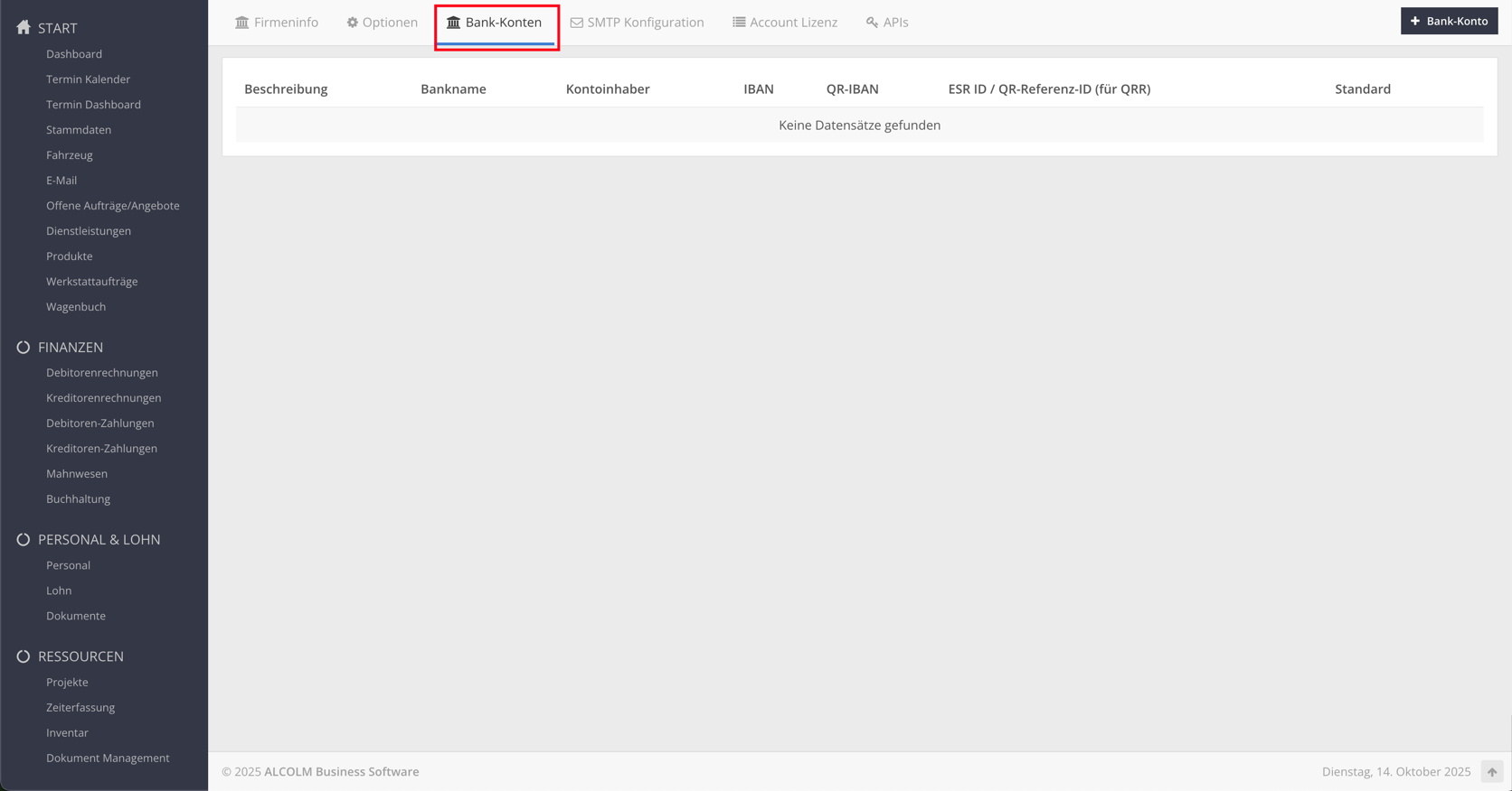 Wechseln Sie in den Tab Bank-Konten.