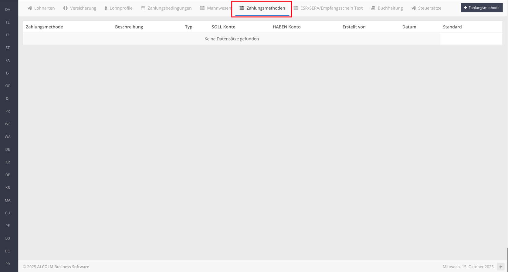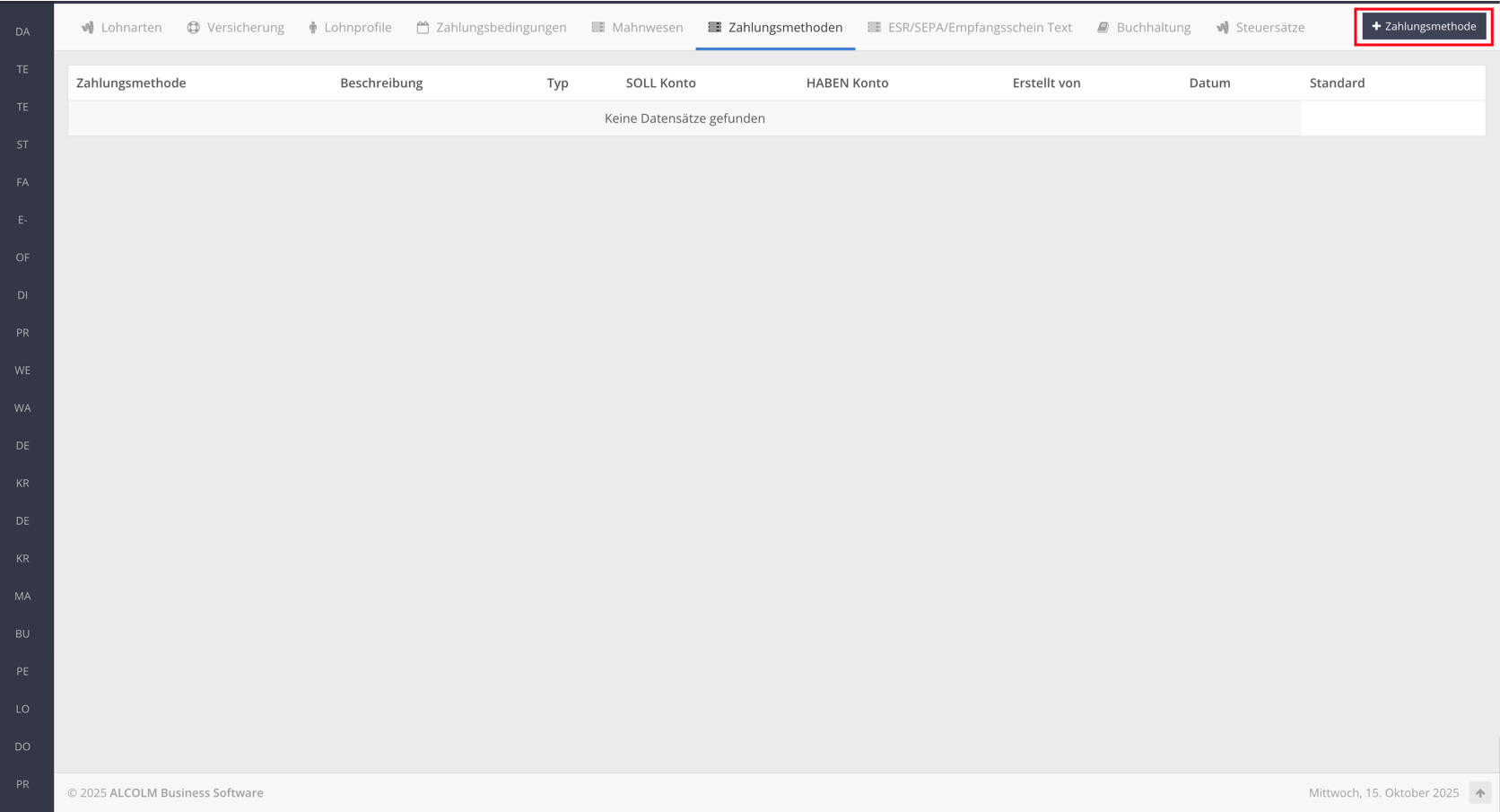 Klicken Sie danach oben rechts auf "+ Zahlungsmethode" um die Zahlundsmethoden zu erstellen.