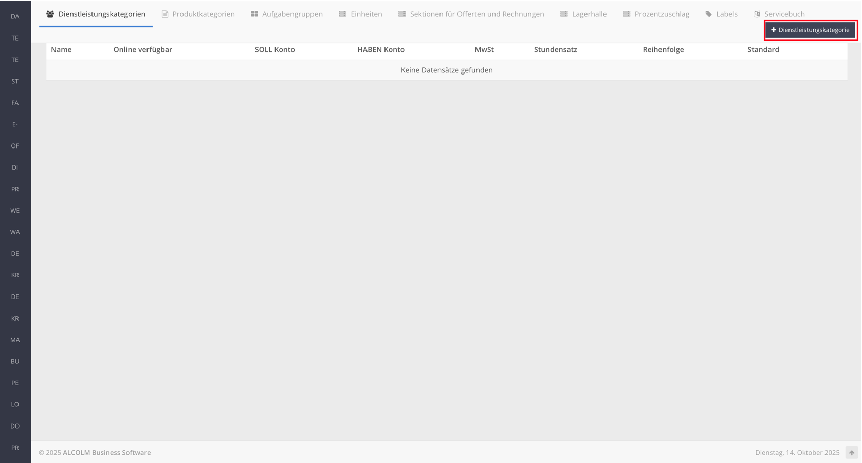 Klicken Sie oben rechts auf + Dienstleistungskategorie.