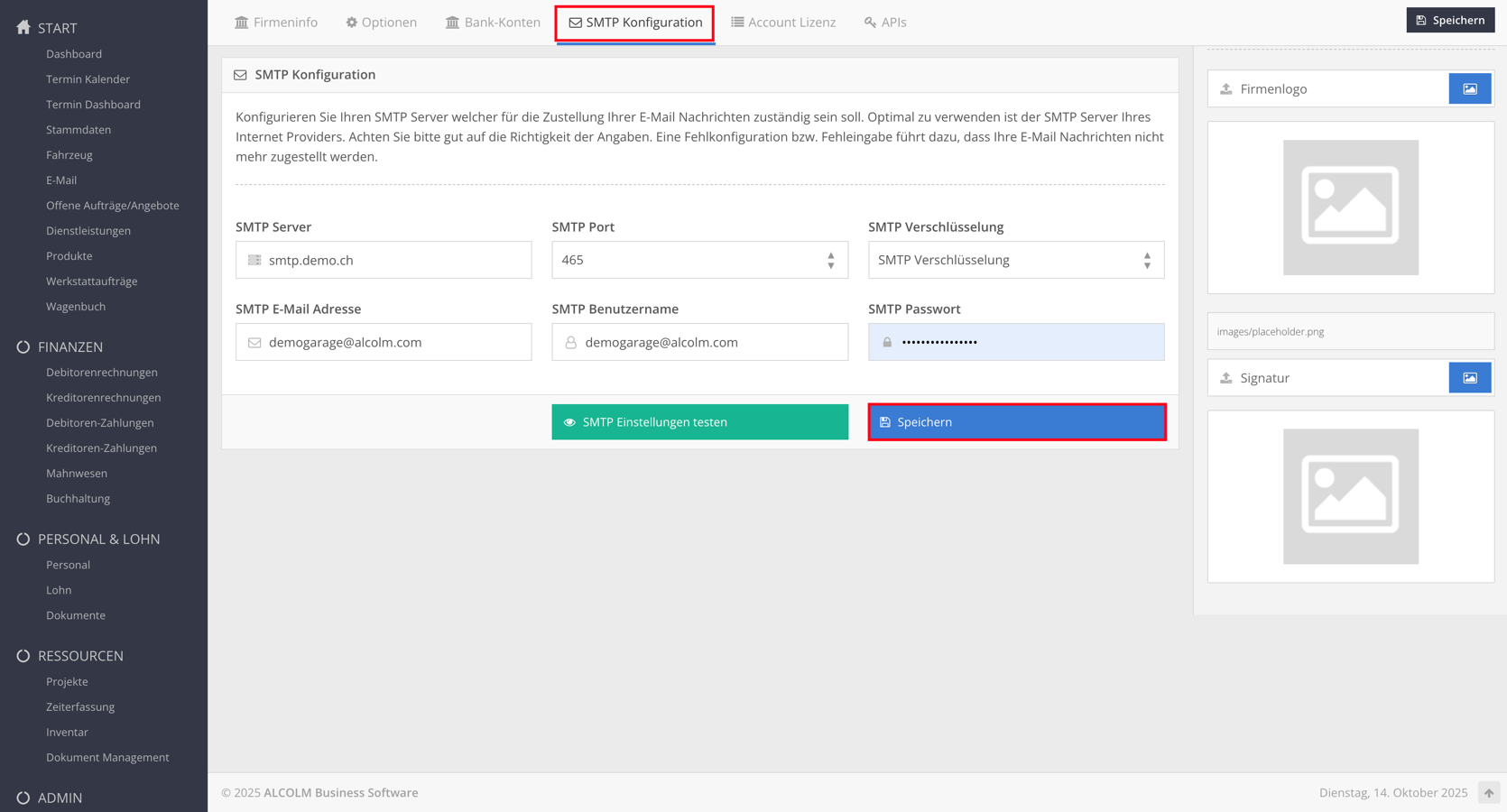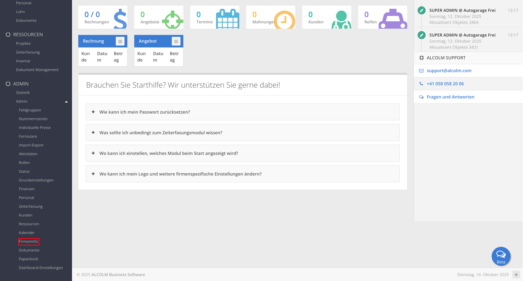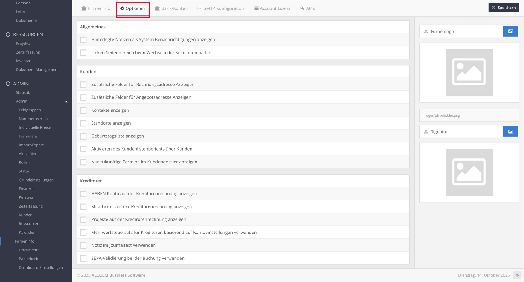 Öffnen Sie das Modul Firmeninfo.