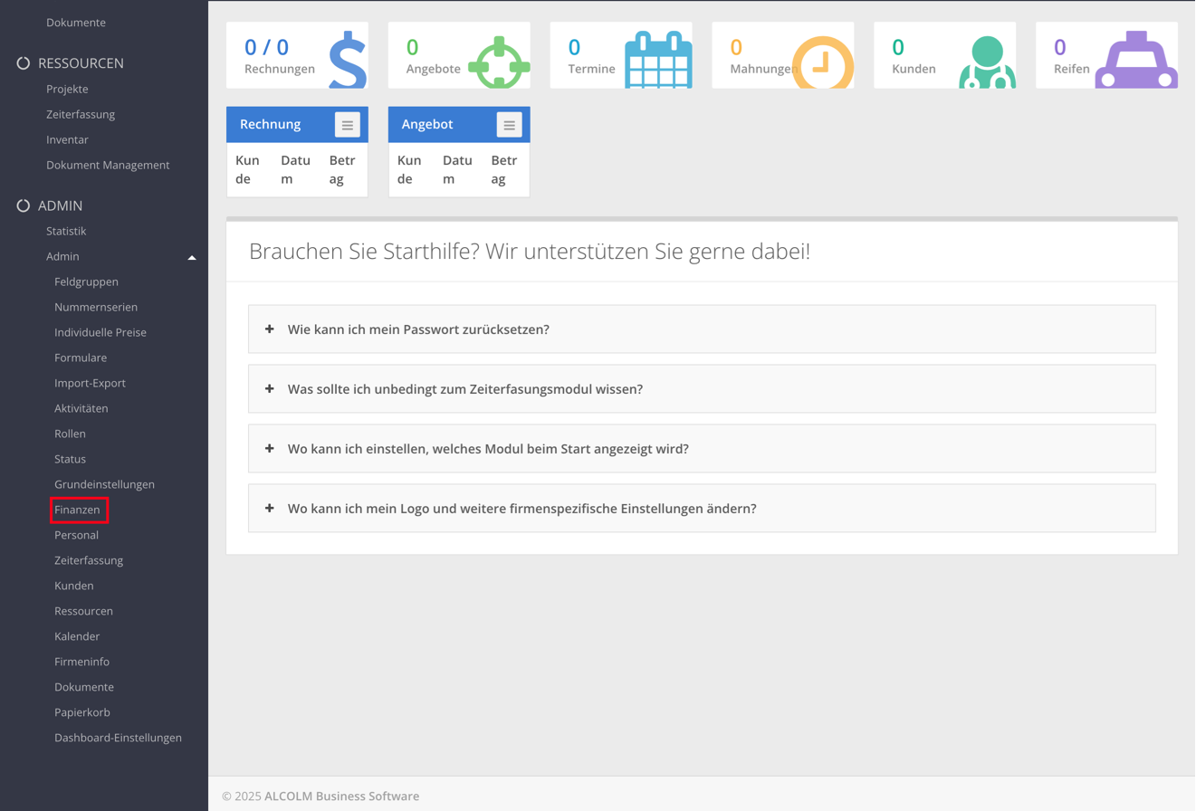 Öffnen Sie das Modul Finanzen.