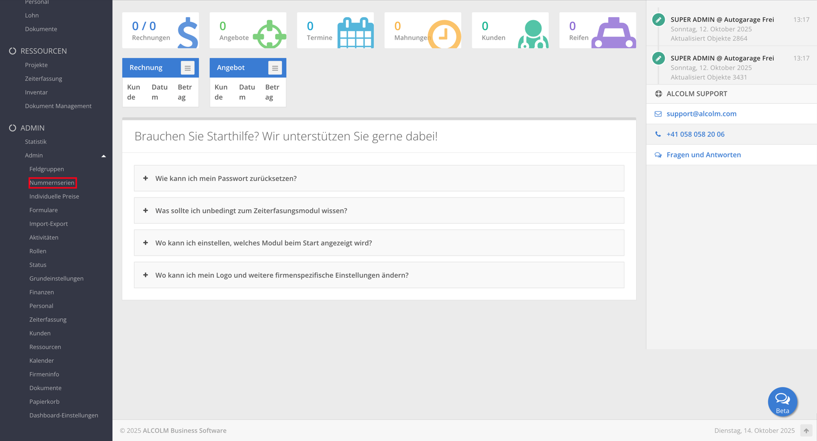 Öffnen Sie das Modul Nummernserien.