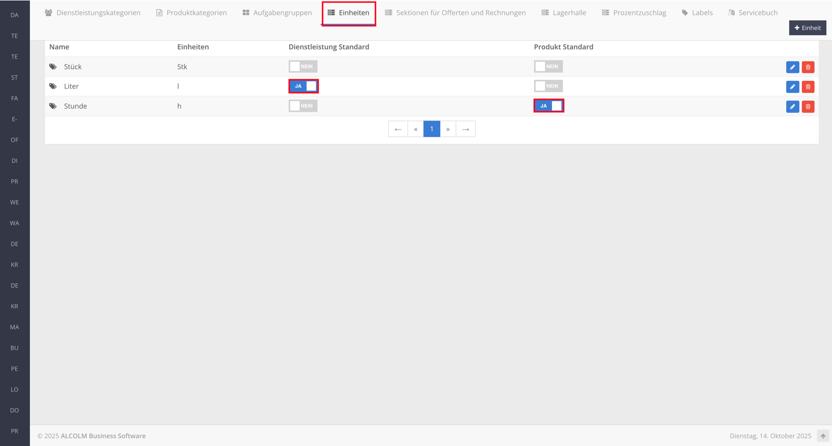 - Liter → Dienstleistung Standard: Ja