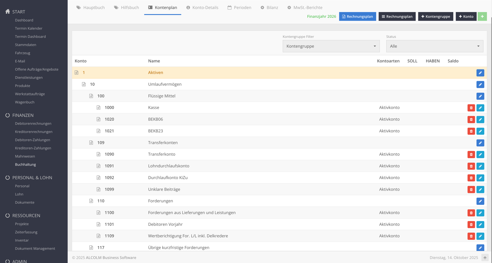 Wechseln Sie zum Tab Kontenplan.