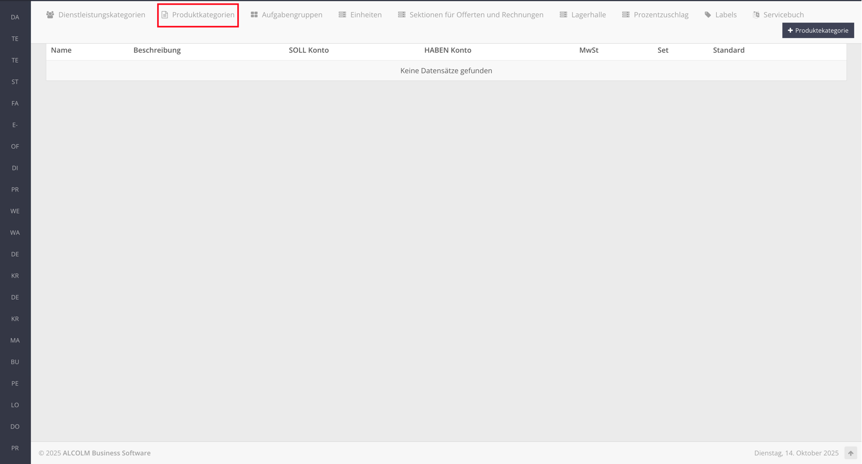 Wechseln Sie in den Tab Produktkategorien.