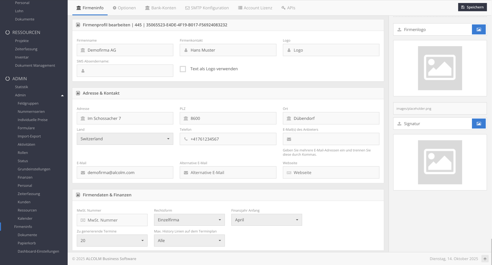 Füllen Sie alle Firmendaten aus.